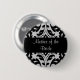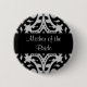 A mother of the bride pin on button in a beautiful black and grey damask pattern.