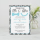 Damask Mr. and Mrs. Couples Wedding Shower Invitation. This stylish invitation features a beautiful black and white damask pattern border with elegant symbols for Mr. and Mrs. in the form of an aqua blue bow tie and pearl necklace. The damask pattern is also printed on the back of the card as a lovely detail.