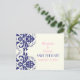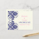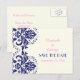 Damask navy blue, pink wedding Save the Date Announcement Postcard