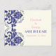 Elegant damask motif navy blue, pink, ivory wedding Save the Date postcard. A modern yet classic wedding design with a retro flair. A delicate wedding design with a vintage feel to it, perfect for a contemporary or traditional spring or summer wedding.