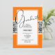 Damask Orange Black Graduation Party Invitation