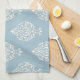 Damask Ornamental Pattern Cream on Blue Tea Towel
