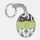 Damask Pattern, Black and White Damask, Monogram Key Ring