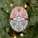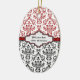 Damask pattern black red white custom ornament. The upper part is of red and white damask pattern and the bottom part is of black and white. A red stripe separates the two parts. Your text is typed on an elegant label with white and red outline. A great keepsake for special occasions weddings, birthdays, anniversaries.