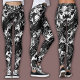 Black & White leggings featuring an intricate, high-contrast swirl pattern that blends classic damask elegance with modern linear aesthetics.