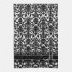 Damask Pattern with Monogram - Black and White Tea Towel