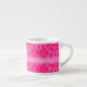 Damask patterned expresso mug. Show your love for coffee and fashion with this pretty unique subtle "Kangaroo Paws" and hearts damask style patterned mug. Reads: "Fashionable Coffee Diva". The "Kangaroo Paw" is a striking native plant from Western Australia this pattern was inspired from the "Kangaroo Paws" interesting structural nature. This original classic but subtly different style mug has been designed exclusively by Sarah Trett.