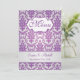 Purple damask pattern on a silver background menu invitation. The matching items are shown below.