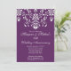 Our modern Wedding Anniversary Invitation features a beautiful white damask flourish set on a rich royal purple background and is perfect for a 20th anniversary, 25th anniversary, 30th anniversary, 35th anniversary, 40th anniversary, 45th anniversary, 50th anniversary or 60th anniversary. Easy to customise with your wedding anniversary party information. Visit our shop to view this stylish & modern wedding anniversary invitation in a large selection of modern and trendy colours.
