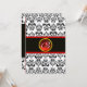 DAMASK RED RUBY MONOGRAM,black and white Invitation