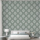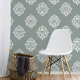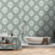 A handmade damask design wallpaper in pale olive. From soft pastel hues to bold dyes, choose a shade that reflects your style, and bring a vintage touch to your modern home with this original design from The Ink Imprint