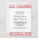 red flowers pattern elegant white damask rehearsal dinner invitations. I suggest the "Linen" or "Felt" paper for this design. If you need more additional products (like rsvp, reception, postage stamps, wedding stickers etc), please contact me. If you like my style, please go to my store and see a lot of unique designs. ..............................................If you need to change only the text please use the "PERSONALIZE IT" window on the right. After you change the information, choose the paper, add a quantity, and that's it - add your product to cart. BUT if you need to change the colours, position, font style, size, to rotate, change the background and more... please push the "CUSTOMIZE" button, and work in "CUSTOMIZE IT" window at the right too. If you have any problems, have a question or need more help please contact me I would be happy to help you.