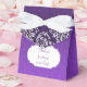 A Digitalbcon Images Design featuring a Royal Purple Colour and Damask Design with a variety of custom images, shapes, patterns, styles and fonts in this one-of-a-kind "Damask Royal Purple Wedding" Favour Box. This elegant and attractive design comes complete with custom text lettering to suit your own greeting. This special design matches available Wedding Invitation Cards designs in the various sizes as well as RSVP Card and Return Address Labels, Magnets, Buttons, Thank You Note Cards and Binders.