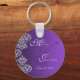 A Digitalbcon Images Design featuring a Royal Purple Color and Damask Design with a variety of custom images, shapes, patterns, styles and fonts in this one-of-a-kind "Damask Royal Purple Wedding" Key Chain. This elegant and attractive design comes complete with custom text lettering to suit your own greeting. This special design matches available Wedding Invitation Cards designs in the various sizes as well as RSVP Card and Return Address Labels as well as Magnets, Binders and Stickers.