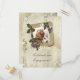 Beautiful photo template postcard in scrapbook style with faded damask print and grunge textured background. Elegant frame with purple flowers and lace accent. Card is displayed as a engagement invitation, but it can be customised to suit any occasion. Just add your own photo and text for a truly unique photo postcard.