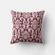 Damask Silver Grey Metallic Burgundy Velvet Cushion