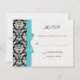 Damask Turquoise Bow Wedding RSVP Card