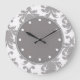Grey damask wall clocks with grey damask pattern clock face in this decorative wall decor clock design for your kitchen, bathroom, or any room in your house you want to add some colour and character. Colours include grey, white and black.