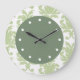Green damask wall clocks with green damask pattern clock face in this decorative wall decor clock design for your kitchen, bathroom, or any room in your house you want to add some colour and character. Colours mint green.