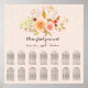Elegant yet simple design featuring hand painted watercolor flowers and foliage in warm autumn pastel colors over a blush pink background with soft ivory damask swirls. Table seating chart that includes seating for up to 140 and 14 tables. You can delete a table or change the number of guests at your tables using the customize it feature. Design copyright, Audrey Jeanne Roberts.