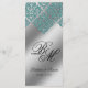 Damask Wedding Menu Cards Sparkle Teal Blue