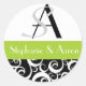 Damask Wedding Monogram in Black and Green Classic Round Sticker