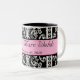 Lovely black and white damask mug with a pink stripe in the middle for the text. Customise with your names and wedding date for a great little thank you gift or to use for yourself. Great for wedding breakfasts.