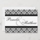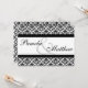 This lovely Damask white and black formal invitation is completely customisable. The cover design has large text for the bride and groom's names and the reverse side has plenty of room for your wedding information. Don't forget the matching accessories!
