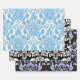 Damask blue and black wrapping paper sheets set of 3.