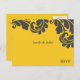 Damask Yellow and Grey Wedding RSVP Invitation Postcard