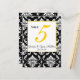 Table Number Cards with black and white damask and yellow accent colours. Layout Design by Elke Clarke©. Graphics licensed. Customise with your information and make one card with each number and add one card per number into our cart.