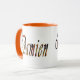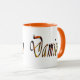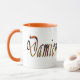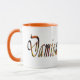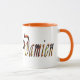 Damien, Logo, Mug, Featured is a black and orange Damien cursive logo,