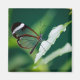 A Glasswing butterfly sits quietly on a leaf.