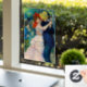Window Cling featuring Pierre-Auguste Renoir’s oil painting Dance at Bougival (1883). A beautiful woman in a pink dress and red hat dances with a handsome man in a blue suit. A great gift for French art and Impressionism collectors.