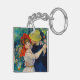 Keychain featuring Pierre-Auguste Renoir’s oil painting Dance at Bougival (1883). A beautiful woman in a pink dress and red hat dances with a handsome man in a blue suit. A great gift for French art and Impressionism collectors.