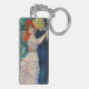 Keychain featuring Pierre-Auguste Renoir’s oil painting Dance at Bougival (1883). A beautiful woman in a pink dress and red hat dances with a handsome man in a blue suit. A great gift for French art and Impressionism collectors.