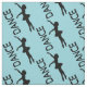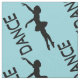 A cute fabric design with a repeating pattern of a silhouette of a ballerina on a pretty background. This elegant ballet dancer is standing on her toes, en pointe with her arms outstretched gracefully. The word "DANCE" written beside this elegant dancer.