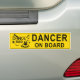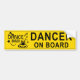 Dance Dad Yellow Warning Bumper Sticker. Design consists of: Dance costume/dress, tap shoes, music note and stars.(DANCER ON BOARD). Great for Dance Dads, driving their young dance stars to and from dance class etc.