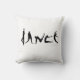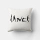 The striking black and white pillow has the word "Dance" spelled with dancing silhouettes of people in dance poses.