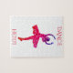 Dancing girl in pink puzzle with personalized name.