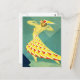 Art Deco illustration in yellow and green with a touch of red. Angular lines and geometric shapes are used to show a graceful dancer.