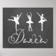 Popular trendy chalkboard look with three female ballet dancers in various dance poses. Fancy girly typography motivates you to move, to dance, to create, to perform, to work at your craft. In shades of black, white and grey. From The Wall Art Shoppe.