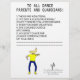 Dance teachers - remind your dance parents and legal guardians to tone down the fanaticism and curb their enthusiasm for their dance students with those flyers - ready to be stapled into dance studio handbooks! With some text customisable, they'll let them know that going professional doesn't matter to kids' dance education. The enjoyment of the art form and the benefits that completely don't have to do with dancing on a cruise ship, with a hip-hop crew, in a theatrical production, or with a ballet company REALLY does. Please customise the text in all caps. White background. Features dancing boy with banana head.