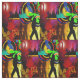 Dance party club scene with dancer silhouettes and the word party scattered around the picture printed on fabric.