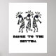 A bold tribal-style illustration featuring three dancing flute players in a traditional silhouette design. The figures move rhythmically as they play their instruments, decorated with simple geometric patterns that reflect a cultural and artistic heritage. The minimal black design creates a striking and timeless look, perfect for designs inspired by music, rhythm, and celebration.