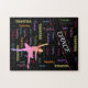 Your ballerina will love this truly uniquely designed dance puzzle with her name printed all over in a variety of colors and fonts! This unique Personalized Name Dance Puzzle in Rainbow Colors with Ombre Ballerina is perfect for a girl's dance birthday party gift, Christmas gift for dancers or to celebrate her most recent dance recital.