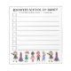 List-style to do list note pad design features an original marker illustration of ballet, tap, jazz, acro, hip hop and lyrical dancers. Just personalise with the name of your dance studio for a one-of-a-kind notepad.