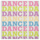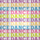 The word DANCE in colourful letters repeated in a pattern.