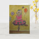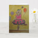 a watercolor print of a dancing pig surrounded by balloons. Holding a stick with a star on top greeting card