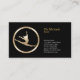 This simple choreographer business card features a jet black background with a gold dancer leap icon on the left side of the card, while your name, title and contact details appear on the right. Designed for entertainment, entertainer, party, fun, kids, children, gatherings, parties, dance themes.